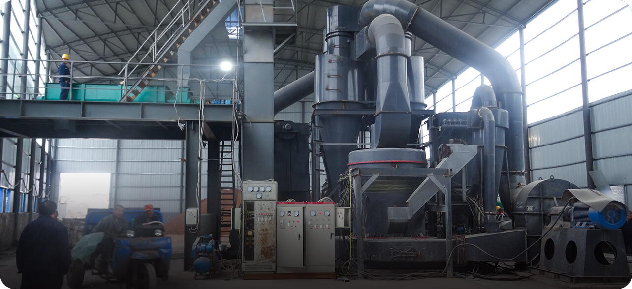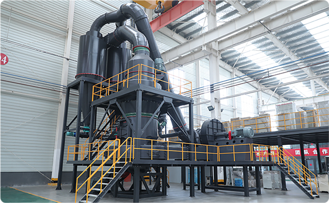 大塊物料進入顎式破碎機后進行初級破碎,然后由斗式提升機將合適粒度的物料均勻送至儲料倉。通過電磁振動給料機把儲料倉的物料均勻、定量、連續(xù)地送到磨粉機的研磨室內(nèi)進行研磨。研磨后的粉末在鼓風機的作用下吹向選粉機進行分選,合格細粉則由管道送至儲料倉,分選后的不合格粉料回落繼續(xù)研磨,最后經(jīng)出料閥輸出即為成品粉料。篩分后合格的成品細粉隨管道裝置進入收塵器內(nèi)分離收集,并統(tǒng)一用裝粉罐車打包或送入成品料倉內(nèi)即可。