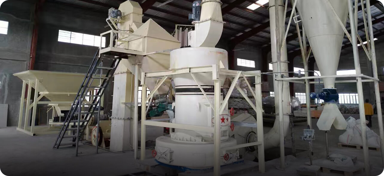 組成設備:鄂破、斗式提升機、電磁給料機、磨粉機、分級機、收塵器等