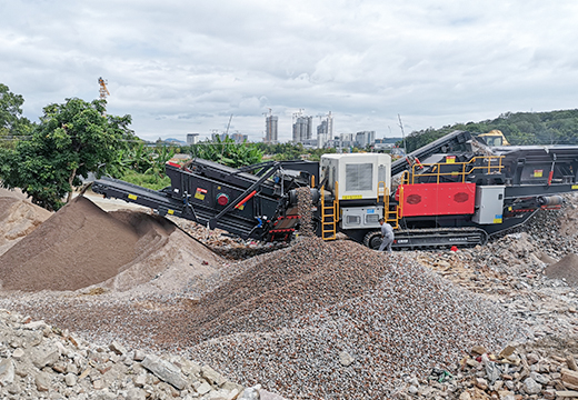 物料經(jīng)給料機(jī)均勻輸送到顎式破碎機(jī)內(nèi),經(jīng)顎式破碎機(jī)初破后的物料經(jīng)輸送機(jī)送入反擊/圓錐破碎機(jī)進(jìn)行二次破碎,破碎出的物料經(jīng)振動(dòng)篩篩分,滿足破碎要求的物料由輸送機(jī)輸出,不滿足要求的物料再次進(jìn)入反擊式破碎機(jī)破碎,整個(gè)履帶式顎式破碎機(jī)+反擊/圓錐移動(dòng)破碎站生產(chǎn)線通過圓振動(dòng)篩構(gòu)成閉路系統(tǒng),實(shí)現(xiàn)物料的循環(huán)破碎,成品物料由輸送機(jī)輸出,進(jìn)行連續(xù)破碎作業(yè)。