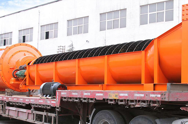 螺旋分級機借助固體顆粒的比重不同,因而在液體中沉淀速度不同的原理,進行機械分級的一種設(shè)備。能把磨出的料粉進行過濾,然后把粗料利用螺旋片旋片旋入磨機進料口,把過濾出的細(xì)料從溢流管子排出。